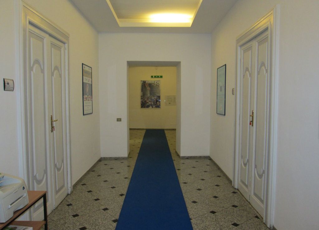 All’ufficio si accede attraverso l’ingresso principale posto sulla scala grande dello stabile e da altri due secondari con accesso dalla scala piccola; entrambe le scale sono dotate di impianto ascensore. La disposizione interna prevede uno sviluppo di 19 ampi locali, due sale attrezzate per conferenze (una con capienza massima di 100 persone, l’altra invece può contenere un affollamento massimo di 40 persone); agli spazi competono poi i locali accessori quali servizi igienici separati (uomo, donna, disabili), ripostigli, area cucina break.